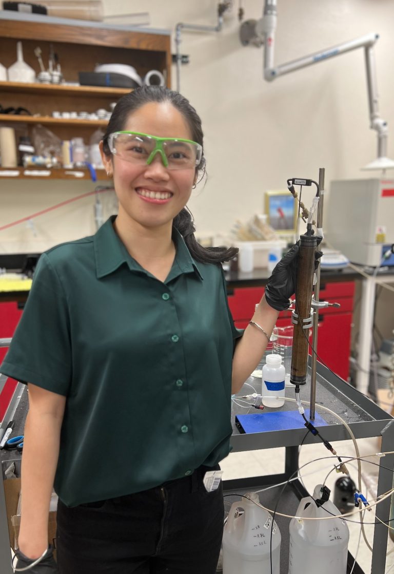 Vy Le (she/her) is a fifth-year MS/PhD student in the Department of Geoscience at the University of Wisconsin-Madison. She completed her Environmental Geoscience B.A. degree and a minor in Chemistry with honors (summa cum laude) at DePauw University in 2019. Her research is currently focused on developing and utilizing novel experimental methods for characterizing, predicting, and preventing bacteria and phosphorus groundwater contamination.